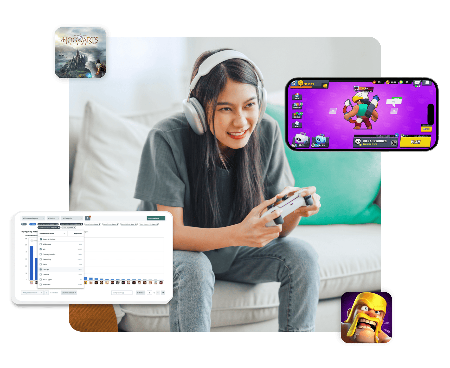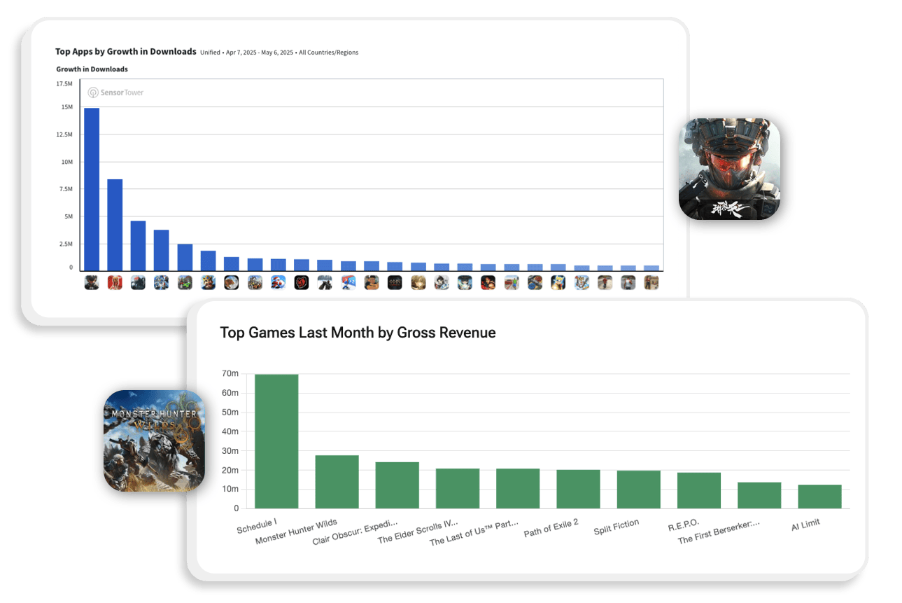 Mobile App Insights and Video Game Insights by Sensor Tower (VGI) enable you to track the entire $200Bn+ games industry with estimates for Mobile App, PC (Steam), and Console (Playstation, xBox) games. With data updated daily, you can spot shifts as they happen, including macro trends for downloads, units sold, and revenue by country, genre, sub-genre, and game features. Understand the game features driving greater revenue and playtime, and identify the markets where new games are most likely to gain traction.